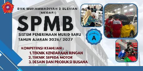 SMK MUHAMMADIYAH 2 SLEMAN kembali membuka pendaftaran siswa baru tahun pelajaran 2026/2027 SYARAT-SYARAT CALON PESERTA DIDIK BARU : 1. Warga Negara Indonesia ( Putra dan Putri ) 2. Sehat Jasmani dan Rohani 3. Berkelakuan Baik 4. Berijazah SMP/ Sederajat &n...